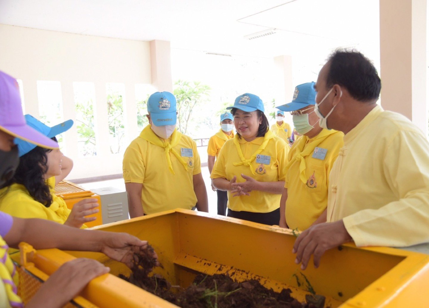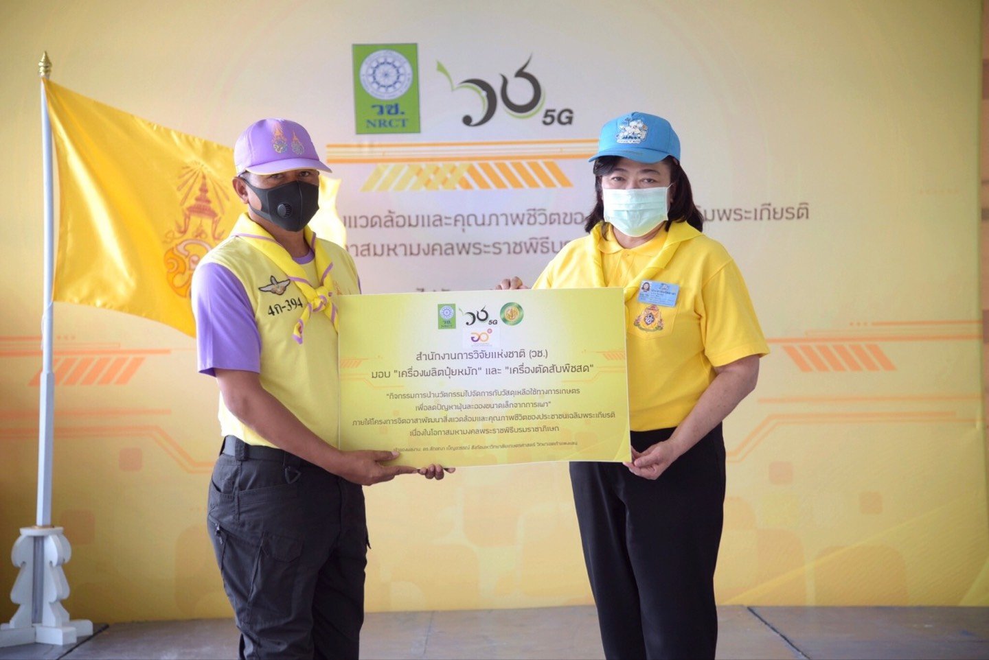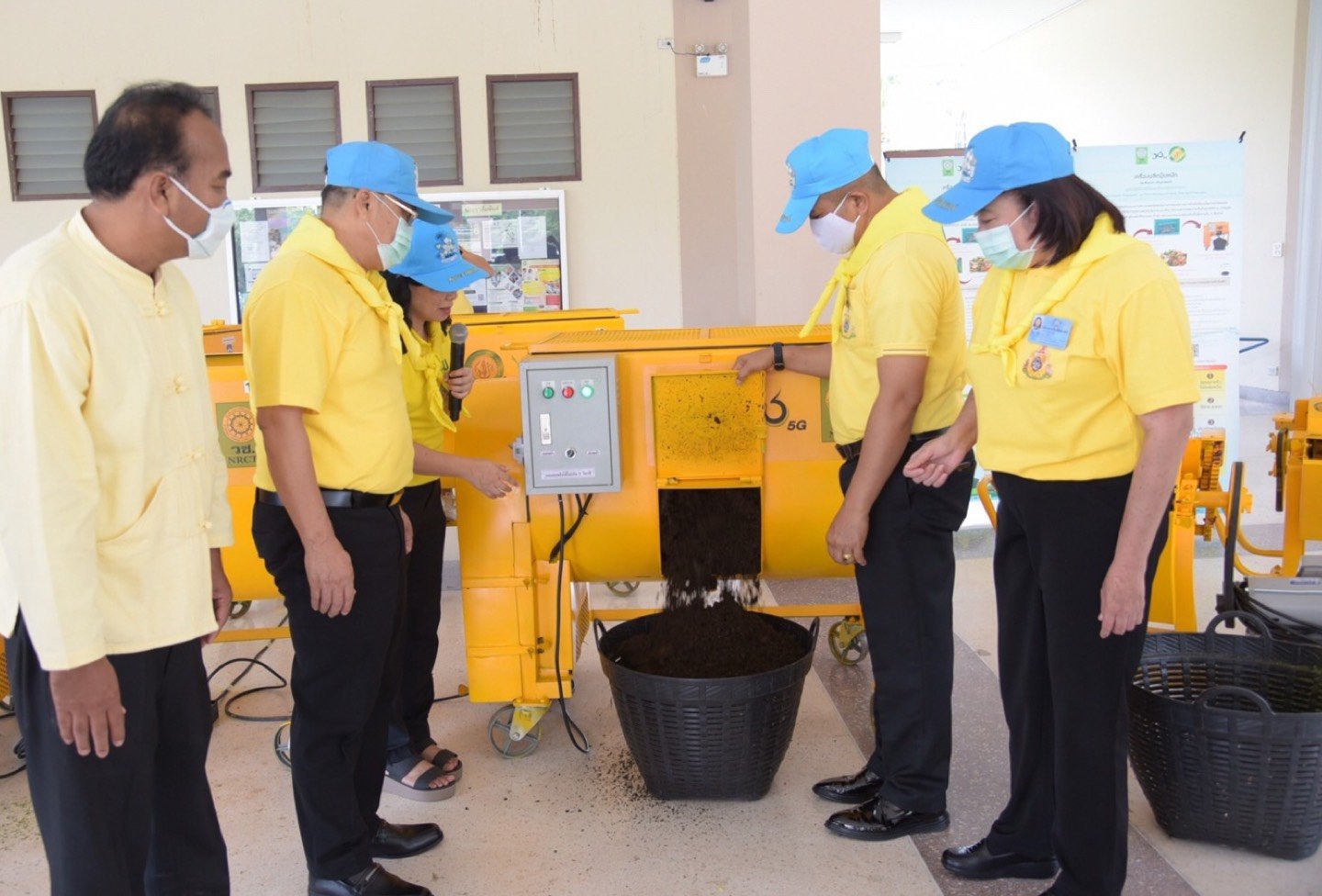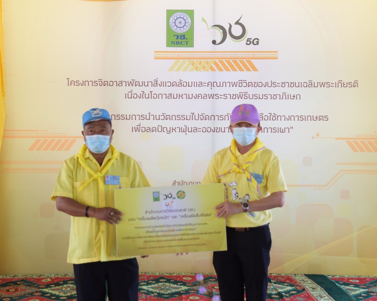สำนักงานการวิจัยแห่งชาติ (วช.) ได้รับมอบหมายจากศูนย์อำนวยการใหญ่จิตอาสาพระราชทาน (ศอญ.) โดยคณะกรรมการจิตอาสาเฉพาะกิจกลุ่มงานโครงการและกิจกรรมเฉลิมพระเกียรติ ให้ดำเนินกิจกรรม “การนำนวัตกรรมไปจัดการกับวัชพืชและผักตบชวา เพื่อสร้างรายได้ให้ชุมชน” ภายใต้โครงการจิตอาสาพัฒนาสิ่งแวดล้อมและคุณภาพชีวิตของประชาชนเฉลิมพระเกียรติ เนื่องในโอกาสมหามงคลพระราชพิธีบรมราชาภิเษก ด้วยนวัตกรรม “เครื่องผลิตปุ๋ยหมัก” ในการผลิตปุ๋ยหมักและดินปลูกต้นไม้จากวัชพืชและผักตบชวา และ ศอญ. เห็นว่านวัตกรรม “เครื่องผลิตปุ๋ยหมัก” สามารถนำไปขยายผลในกลุ่มเกษตรกรอื่น ๆ เช่น เกษตรกรเพาะปลูกพืชเชิงเดี่ยว (ข้าวโพดและอ้อย) เพื่อช่วยลดปัญหาหมอกควันจากการเผาวัสดุเหลือใช้ทางการเกษตรและวัชพืช โดยการนำวัสดุเหลือใช้ทางการเกษตรและวัชพืชมาแปรรูปการทำปุ๋ยหมักและดินปลูก