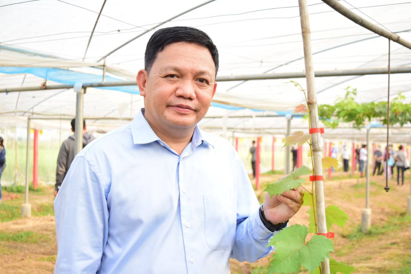 ผู้ช่วยศาสตราจารย์ ดร.พีระศักดิ์ ฉายประสาท อาจารย์ภาควิชาวิทยาศาสตร์เกษตร คณะเกษตรศาสตร์ ทรัพยากรธรรมชาติ และสิ่งแวดล้อม มหาวิทยาลัยนเรศวร จังหวัดพิษณุโลก และหัวหน้าโครงการการจัดการความรู้และถ่ายทอดเทคโนโลยีการผลิตองุ่นไซน์มัสแคทเชิงพาณิชย์ ที่ได้รับการสนับสนุนจากสำนักงานการวิจัยแห่งชาติ (วช.) กระทรวงการอุดมศึกษา วิทยาศาสตร์ วิจัยและนวัตกรรม (อว.)สาธิตการปลูกองุ่นไชน์มัสแคมระหว่างการอบรมการปลูกและการดูแลรักษาองุ่นไชน์มัสแคทพืชเศรษฐกิจตัวใหม่เมื่อวันที่ 16 มีนาคม 2564 ณ ไร่ฟาร์มอดุลย์ ตำบลวงฆ้อง อำเภอพรหมพิราม จังหวัดพิษณุโลก