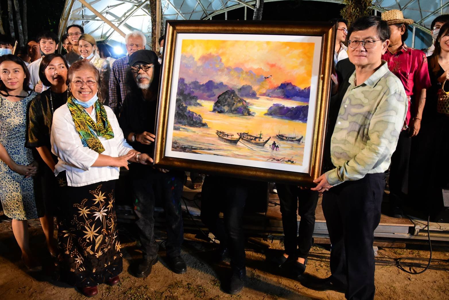 และระหว่างการบรรเลงเพลง ดร.สุชาติ วงษ์ทอง ได้สร้างสรรค์ภาพจิตรกรรมประกอบบทเพลงกิจกรรมบรรเลงเพลงพื้นบ้านที่จังหวัดกระบี่โดยวงไทยซิมโฟนีออร์เคสตร้านี้ เป็นผลงานการวิจัยใน “โครงการวิจัยพื้นที่ ทางวัฒนธรรมดนตรีเพื่อพัฒนาและสร้างสรรค์จินตนาการใหม่โดยอาศัยร่องรอยวิถีชีวิตของชุมชนผ่านศิลปินในท้องถิ่นผู้สืบทอดวัฒนธรรมดนตรีของชุมชน” และ “โครงการขยายผลต่อยอดวัฒนธรรมเพลงพื้นบ้านเพื่อเผยแพร่ให้เป็นมรดกชาติ” ที่ วช. ได้สนับสนุน “มูลนิธิอาจารย์สุกรี เจริญสุข” ซึ่งดำเนินการโดย