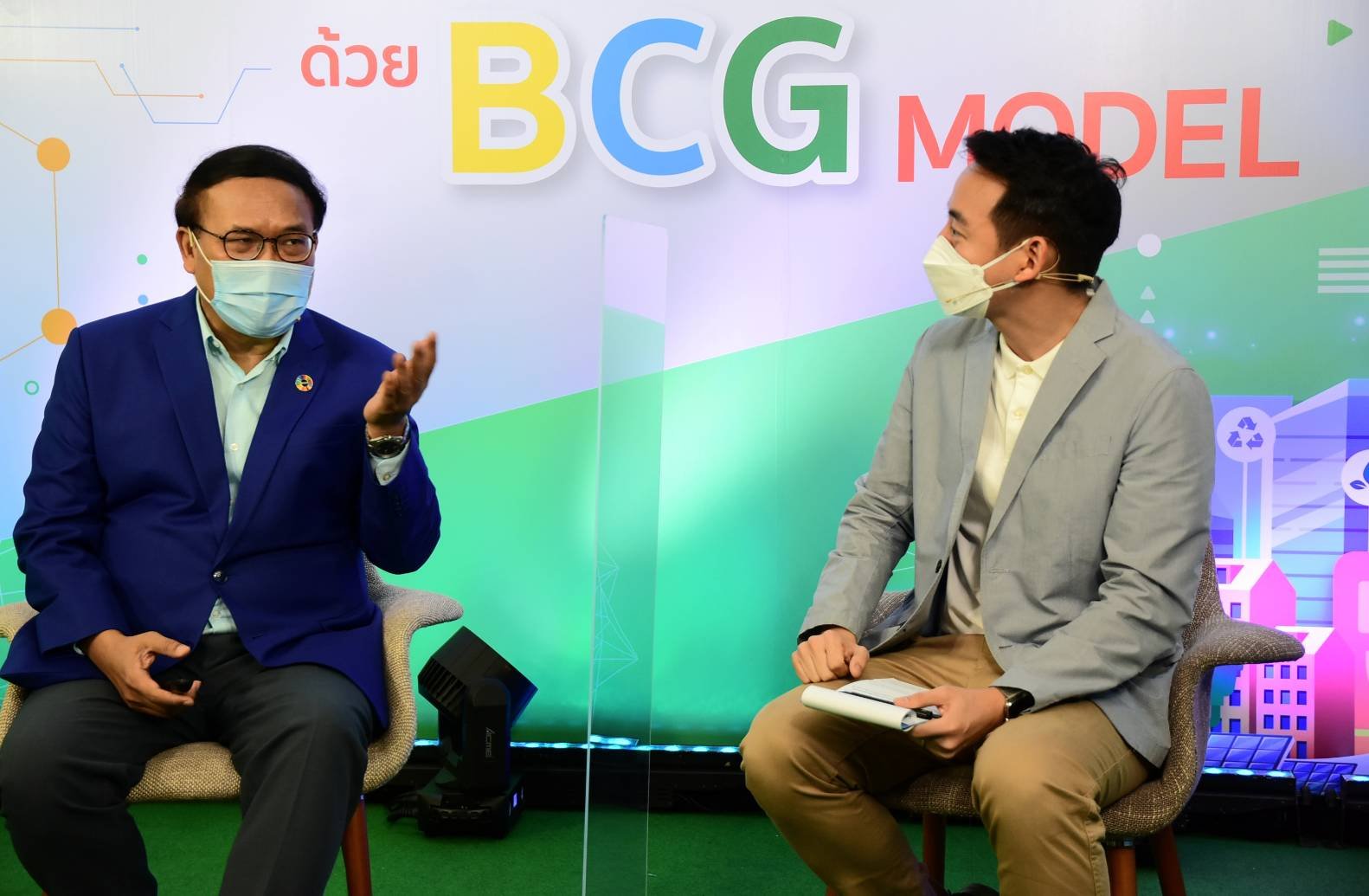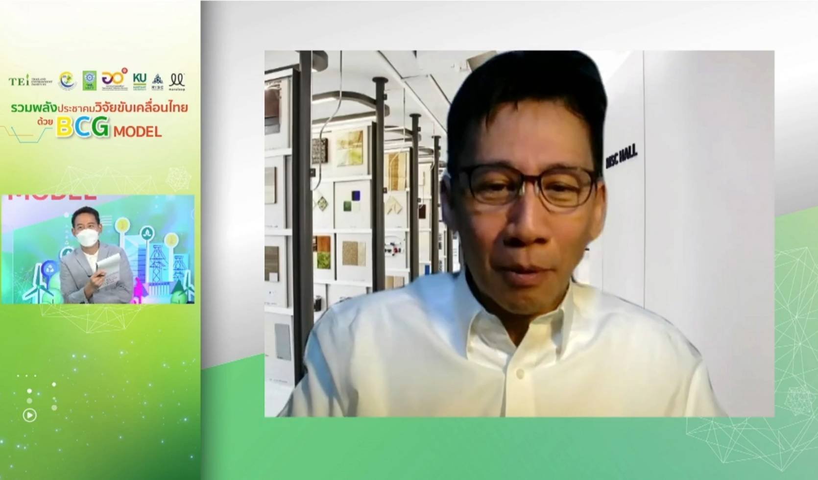 และคุณพิพัฒน์ วิทยาปัญญานนท์ สถาปนิกและพิธีกรรายการวิทยาศาสตร์เทคโนโลยี ร่วมกันสรุปมุมมองการขับเคลื่อนการพัฒนาประเทศด้วยโมเดลเศรษฐกิจ BCG สู่แนวคิดการร่วมมือแบบบูรณาการและการปฏิบัติจริง ซึ่งการวิจัยและนวัตกรรมจะเป็นกลไกสำคัญในการขับเคลื่อนการพัฒนาประเทศ โดยการเสริมจุดแข็งของการมีฐานทรัพยากรจากความหลากหลายทางชีวภาพที่สูง เร่งกระบวนการทำงานของภาคส่วนต่าง ๆ เพื่อมุ่งสู่การเพิ่มประสิทธิภาพการผลิต ยกระดับมาตรฐานสินค้าและบริการสู่ผลิตภัณฑ์มูลค่าสูง ลดการใช้ทรัพยากร และหมุนเวียนการใช้ทรัพยากร เพื่อสร้างการเติบโตทางเศรษฐกิจที่เป็นมิตรต่อสิ่งแวดล้อม “สู่การพัฒนาประเทศอย่างยั่งยืน”