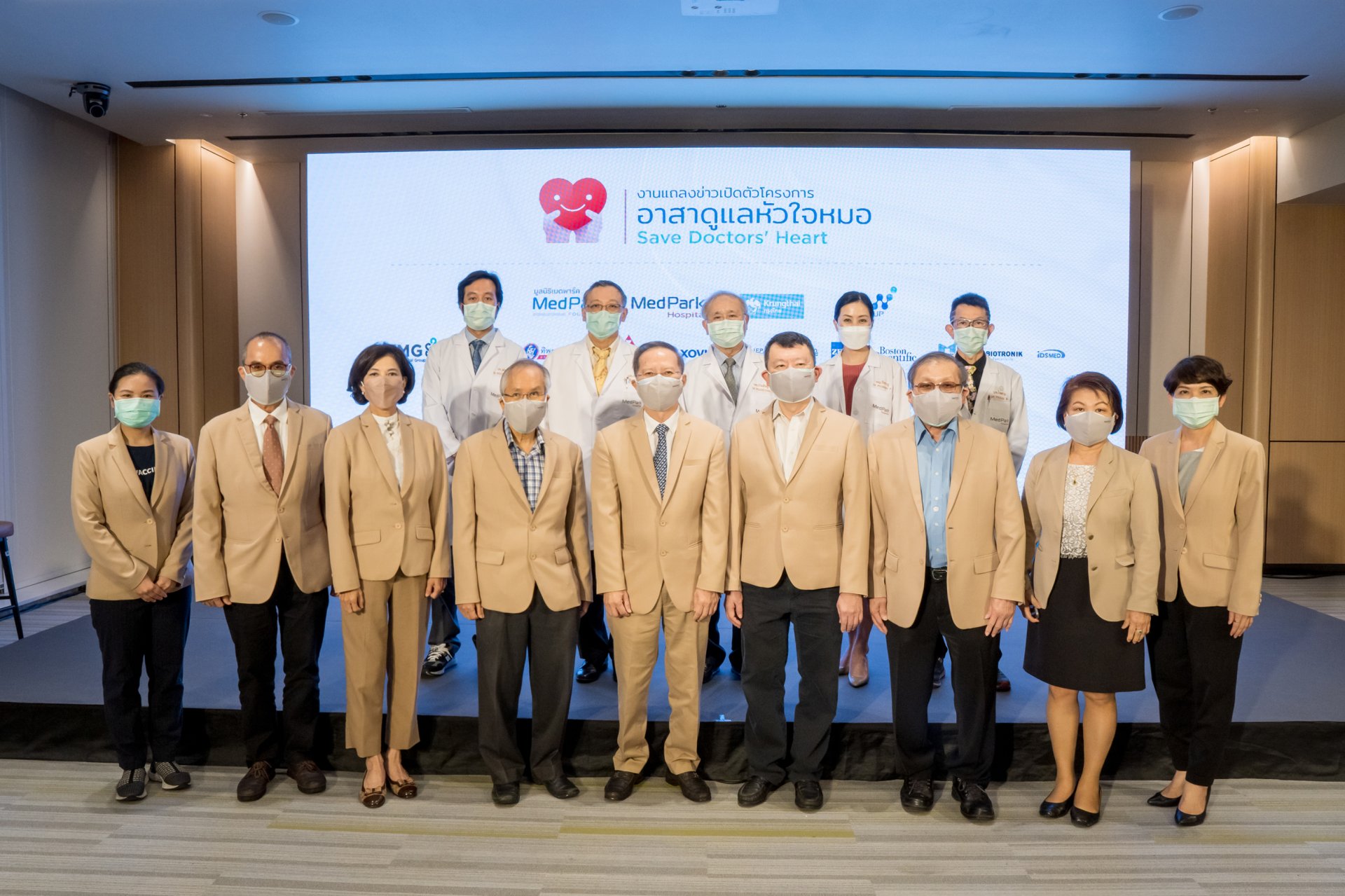 ครั้งแรกในประเทศไทยที่แพทย์จะเข้าร่วมอาสาดูแลหัวใจแพทย์ โดย โรงพยาบาลเมดพาร์ค ร่วมกับองค์กรพันธมิตร เปิดตัวโครงการเพื่อสังคม “อาสาดูแลหัวใจหมอ (Save Doctors’ Heart)” ในงานแถลงข่าววันที่ 14 กุมภาพันธ์ 2564 ณ ห้อง Forum ชั้น M โรงพยาบาลเมดพาร์ค