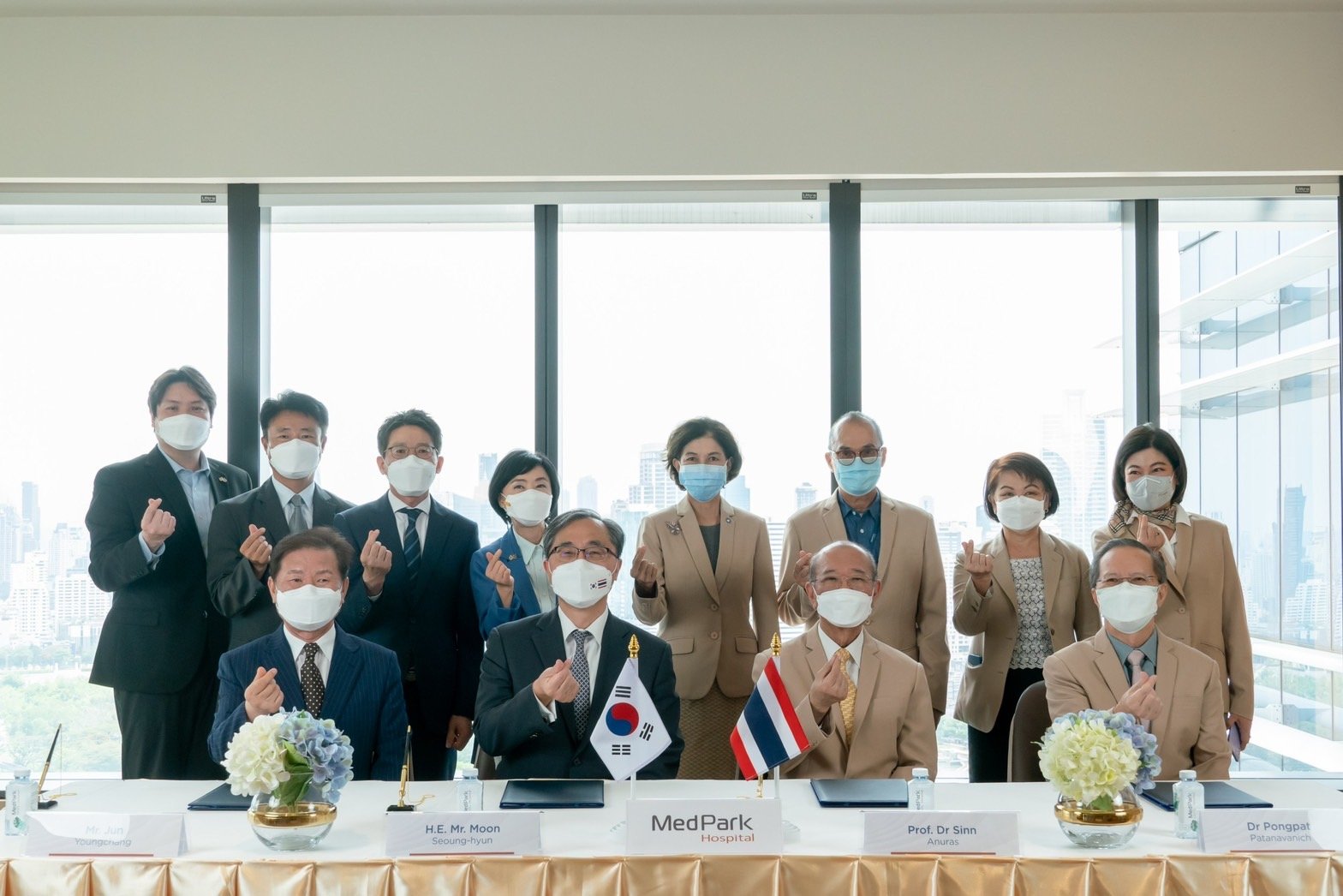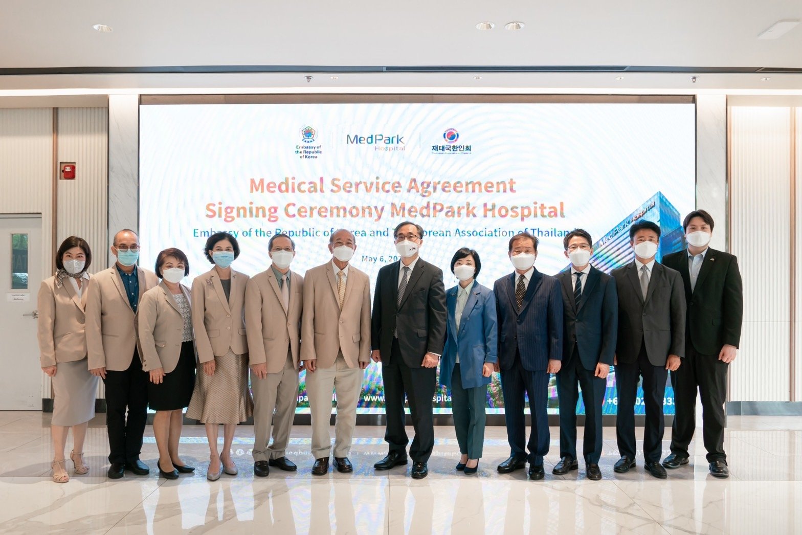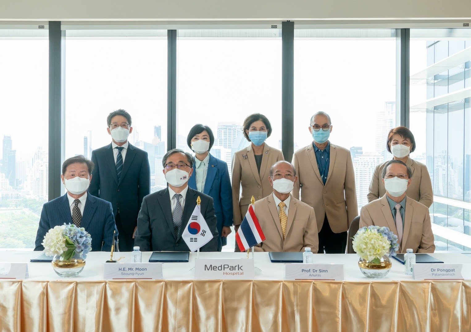 ผู้บริหาร โรงพยาบาลเมดพาร์ค นำโดย ศ.นพ.สิน อนุราษฎร์ พร้อมด้วย นพ. พงษ์พัฒน์ ปธานวนิช ร่วมต้อนรับ ฯพณฯ มุน ซึง-ฮยอน เอกอัครราชทูตเกาหลีประจำประเทศไทย และ มร. จอง ยง ชาง นายกสมาคมเกาหลีแห่งประเทศไทย ในการเซ็นสัญญาความร่วมมือทางการแพทย์ เมื่อวันที่ 6 พฤษภาคม 2565 ที่ผ่านมา โดยทางโรงพยาบาลเมดพาร์คมีความพร้อม ที่จะให้การดูแลและรักษาพลเมืองชาวเกาหลีที่อาศัยอยู่ในประเทศ รวมถึงนักท่องเที่ยวชาวเกาหลีที่มาท่องเที่ยวยังประเทศไทย
