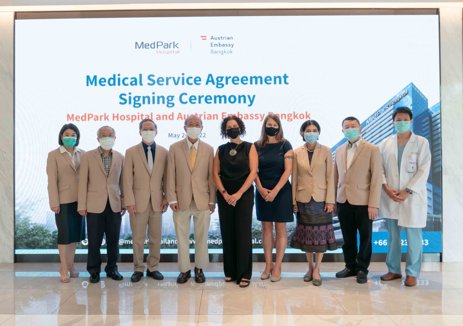 โดยทางโรงพยาบาลเมดพาร์คพร้อมที่จะเป็นโรงพยาบาลที่ดูแลบุคลากรของสถานทูตรวมถึงชาวออสเตรีย ด้วยเทคโนโลยีที่ทันสมัยและในฐานะศูนย์กลางทางการแพทย์เฉพาะทาง “โรคยากซับซ้อน”