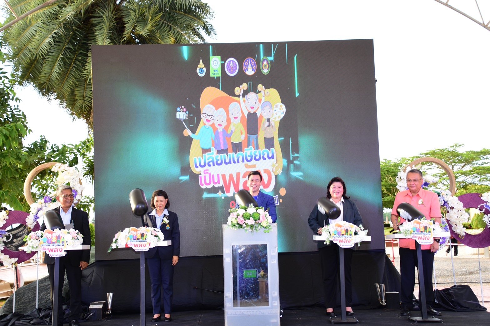 วันที่ 9 มิถุนายน 2565 รองศาสตราจารย์พิเศษ ดร.ดวงฤทธิ์ เบ็ญจาธิกุล ชัยรุ่งเรือง เลขานุการรัฐมนตรีว่าการและโฆษกกระทรวงการอุดมศึกษา วิทยาศาสตร์ วิจัยและนวัตกรรม เป็นประธานในพิธีเปิด และเป็นสักขีพยานในการลงนามความร่วมมือแสดงเจตจำนงในการขับเคลื่อนโครงการ “เปลี่ยนเกษียณเป็นพลัง” ระหว่างกระทรวงการอุดมศึกษา วิทยาศาสตร์ วิจัยและนวัตกรรม (อว.) โดย วช. ร่วมกับหน่วยงานที่เกี่ยวข้องอีก 3 หน่วยงาน ประกอบด้วย มนร. จ.สุราษฎร์ธานี และ มรส. เพื่อร่วมกันสร้างและพัฒนาโรงเรียนผู้สูงวัยในรูปแบบ Digital Education & On the job Coaching และ Model กระบวนการจัดการความรู้จากการวิจัยมาเพื่อเพิ่มทักษะ รวมถึงนำหลักสูตรการพัฒนาทักษะการประกอบอาชีพในโรงเรียนผู้สูงวัย Online & Onsite โดย Senior Trainer และ Reskill & Upskill ในทักษะที่เหมาะสมกับผู้สูงวัย เพื่อรองรับวิถีชีวิตใหม่ โดยมี นายวิชวุทย์ จินโต ผู้ว่าราชการจังหวัดสุราฎร์ธานี กล่าวต้อนรับ และ ดร.วิภารัตน์ ดีอ่อง ผู้อำนวยการสำนักงานการวิจัยแห่งชาติ กล่าวความเป็นมาของโครงการฯ และ มี ผศ.ดร.เสน่ห์ บุญกำเนิด รองอธิการบดีฝ่ายวิชาการ วิจัยและนวัตกรรม และดร.มนัสวิน นันทเสน หรือ ติ๊ก ชิโร่ นักร้องนักแสดงเข้าร่วมงานในครั้งนี้ด้วย ณ ลานสะพานนริศ จังหวัดสุราษฎร์ธานี