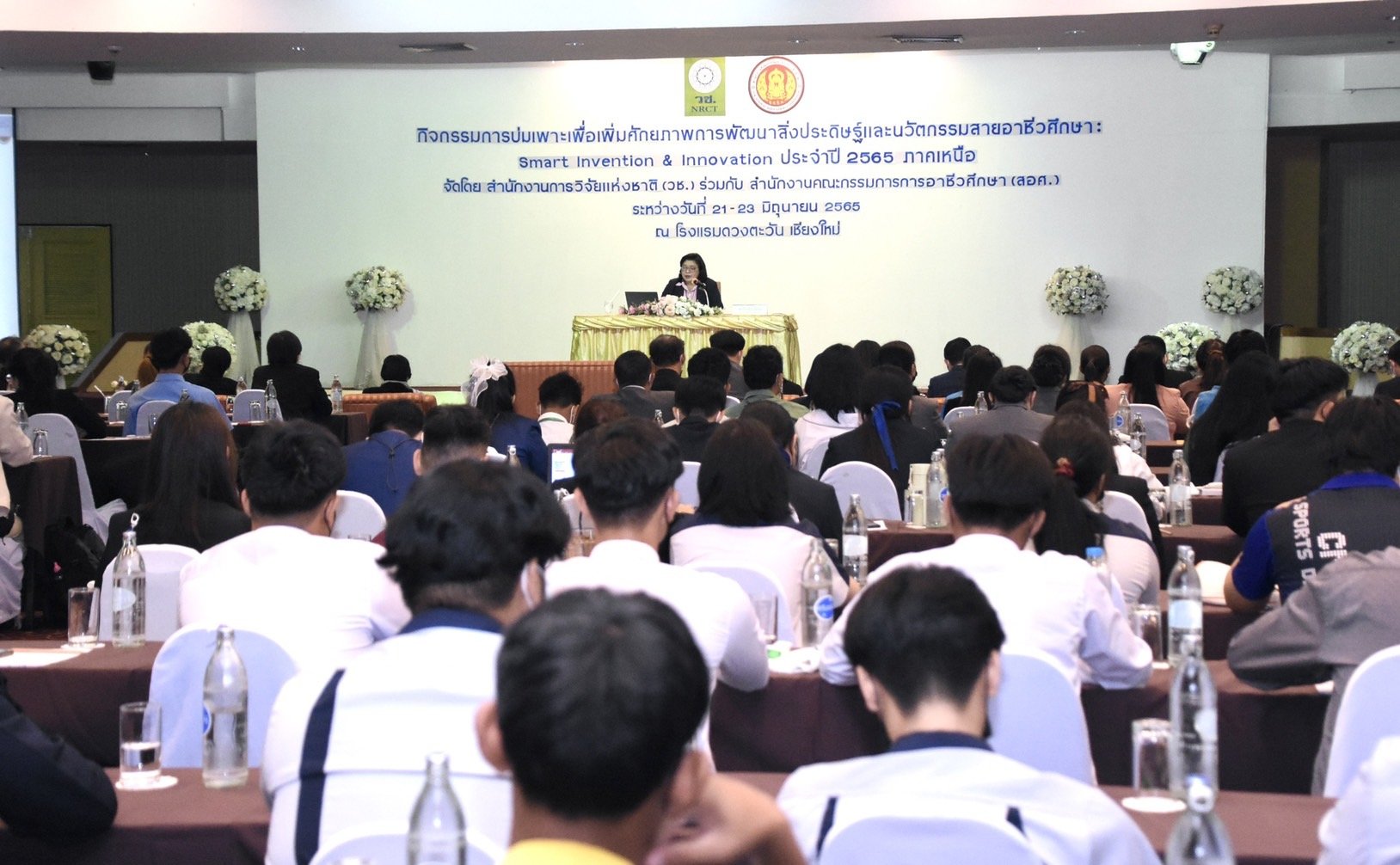 วันที่ 21 มิถุนายน 2565 สำนักงานการวิจัยแห่งชาติ (วช.) กระทรวงการอุดมศึกษา วิทยาศาสตร์วิจัยและนวัตกรรม ร่วมกับ สำนักงานคณะกรรมการการอาชีวศึกษา (สอศ.) จัดกิจกรรม “การบ่มเพาะเพิ่มศักยภาพการพัฒนาสิ่งประดิษฐ์และนวัตกรรมสายอาชีวศึกษา : Smart Invention & Innovation ภาคเหนือ” โดยมี ดร.วิภารัตน์ ดีอ่อง ผู้อำนวยการสำนักงานการวิจัยแห่งชาติ เป็นประธานเปิดงานพร้อมปาฐกถาพิเศษ