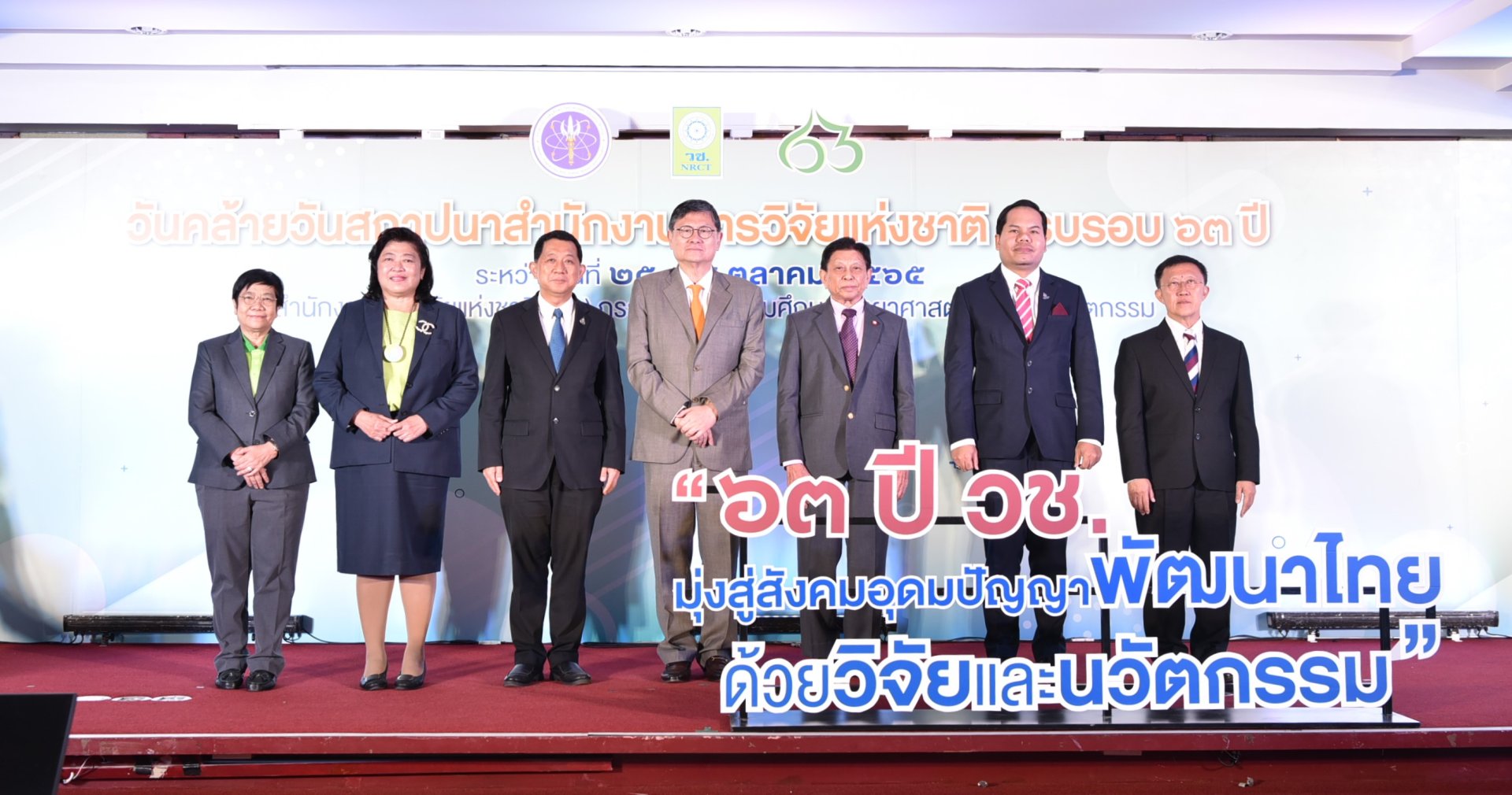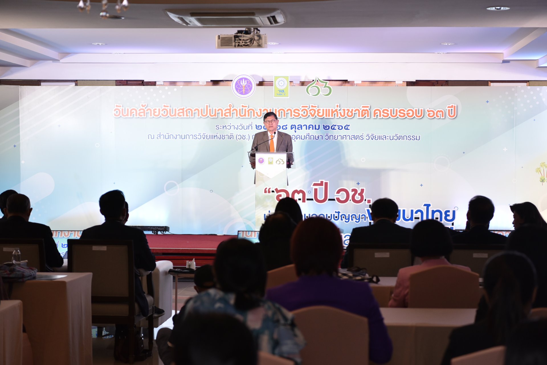 เมื่อวันที่ วันที่ 25 ตุลาคม 2565 ที่ผ่านมา สำนักงานการวิจัยแห่งชาติ (วช.) กระทรวงการอุดมศึกษา วิทยาศาสตร์ วิจัยและนวัตกรรม จัดงาน “วันคล้ายวันสถาปนา วช. ครบรอบ 63 ปี” เพื่อส่งเสริมให้ประชาชนและหน่วยงานที่เกี่ยวข้องใช้ประโยชน์จากการวิจัยและนวัตกรรมเห็นถึงความสำคัญในการส่งเสริมและพัฒนา นำงานวิจัยไปใช้ประโยชน์ในการพัฒนาเศรษฐกิจของประเทศ ในโอกาสครบรอบ 63 ปีนี้ วช. ได้จัดขึ้นระหว่างวันที่ 25 - 28 ตุลาคม 2565 ณ สำนักงานการวิจัยแห่งชาติ โดยมีศาสตราจารย์พิเศษ ดร.เอนก เหล่าธรรมทัศน์ รัฐมนตรีว่าการกระทรวงการอุดมศึกษา วิทยาศาสตร์ วิจัยและนวัตกรรม เป็นประธานในพิธีเปิดงาน