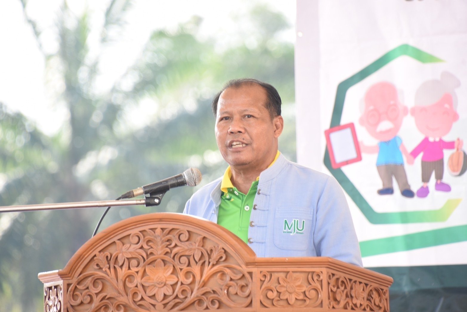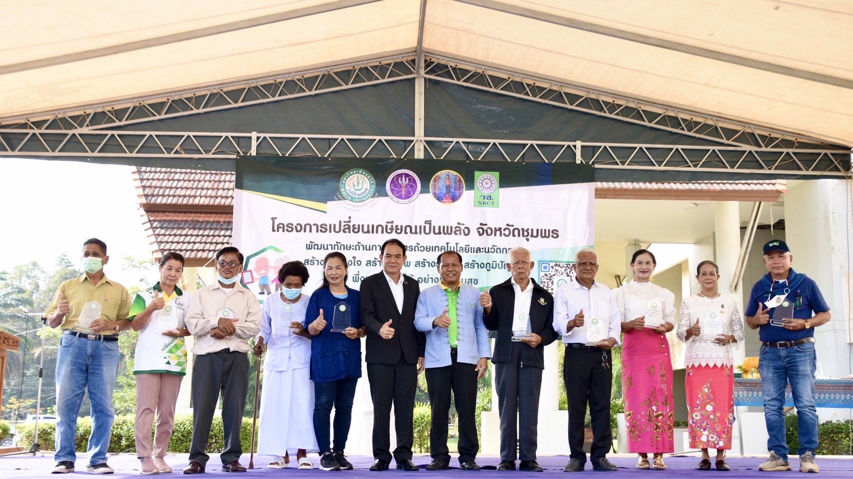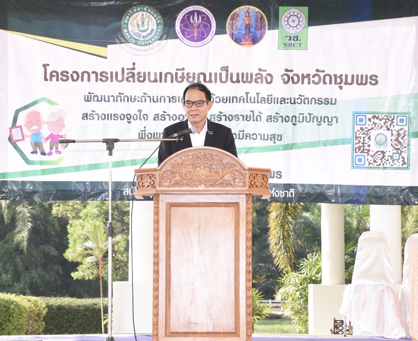 นายนิรัช โอบอ้อม ปลัดอำเภอละแม กล่าวว่า ในนามของ จ.ชุมพร ขอขอบคุณ วช. และ มหาวิทยาลัยแม่โจ้-ชุมพร ที่ได้จัดให้มีโครงการเปลี่ยนเกษียณเป็นพลังขึ้น จ.ชุมพรเป็นเมืองเกษตรกรรม และอุดมไปด้วยผลผลิตทางการเกษตร ซึ่งโครงการดังกล่าวจะเป็นการสร้างแรงจูงใจของกลุ่มผู้สูงอายุในการพัฒนาทักษะด้านการเกษตร และส่งเสริมการประกอบอาชีพด้วยเทคโนโลยีและนวัตกรรมการเกษตรสมัยใหม่ สร้างกลไกในการเตรียมความพร้อมเข้าสู่สังคมสูงวัยของ จ.ชุมพร