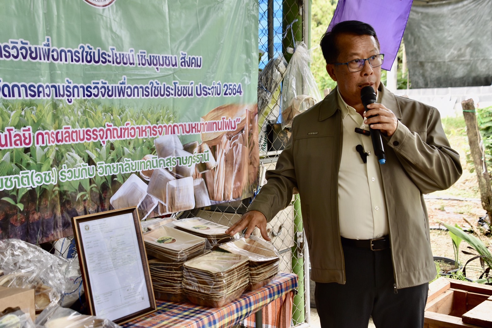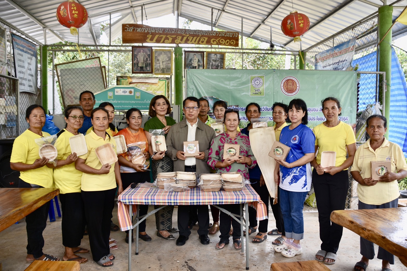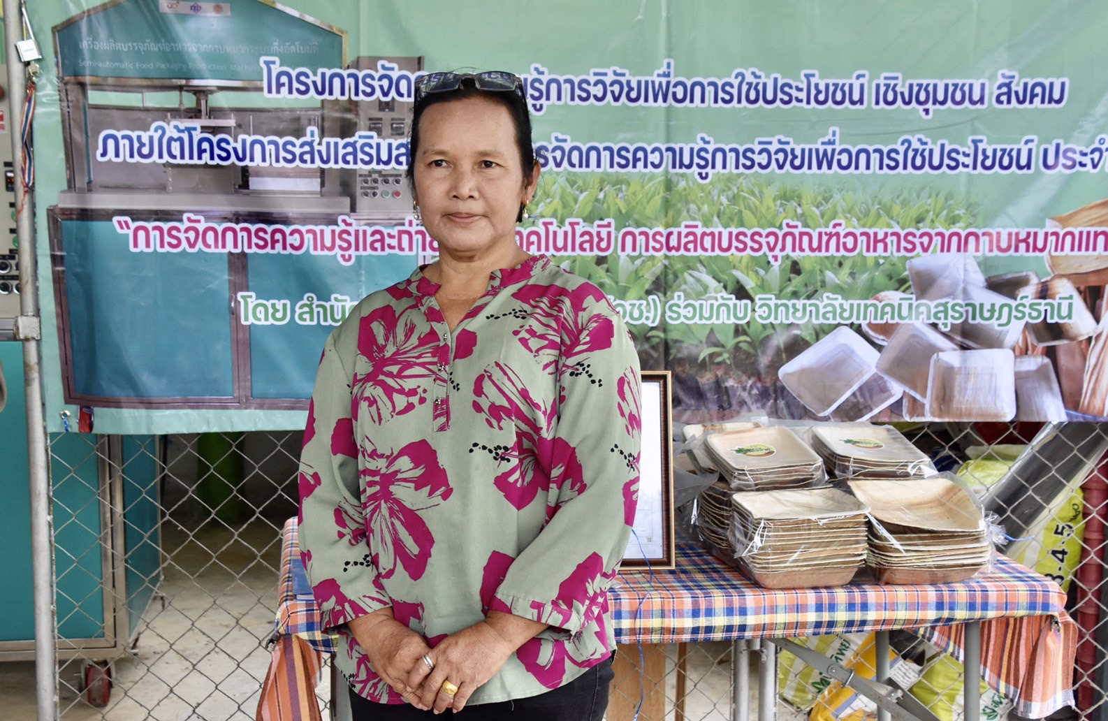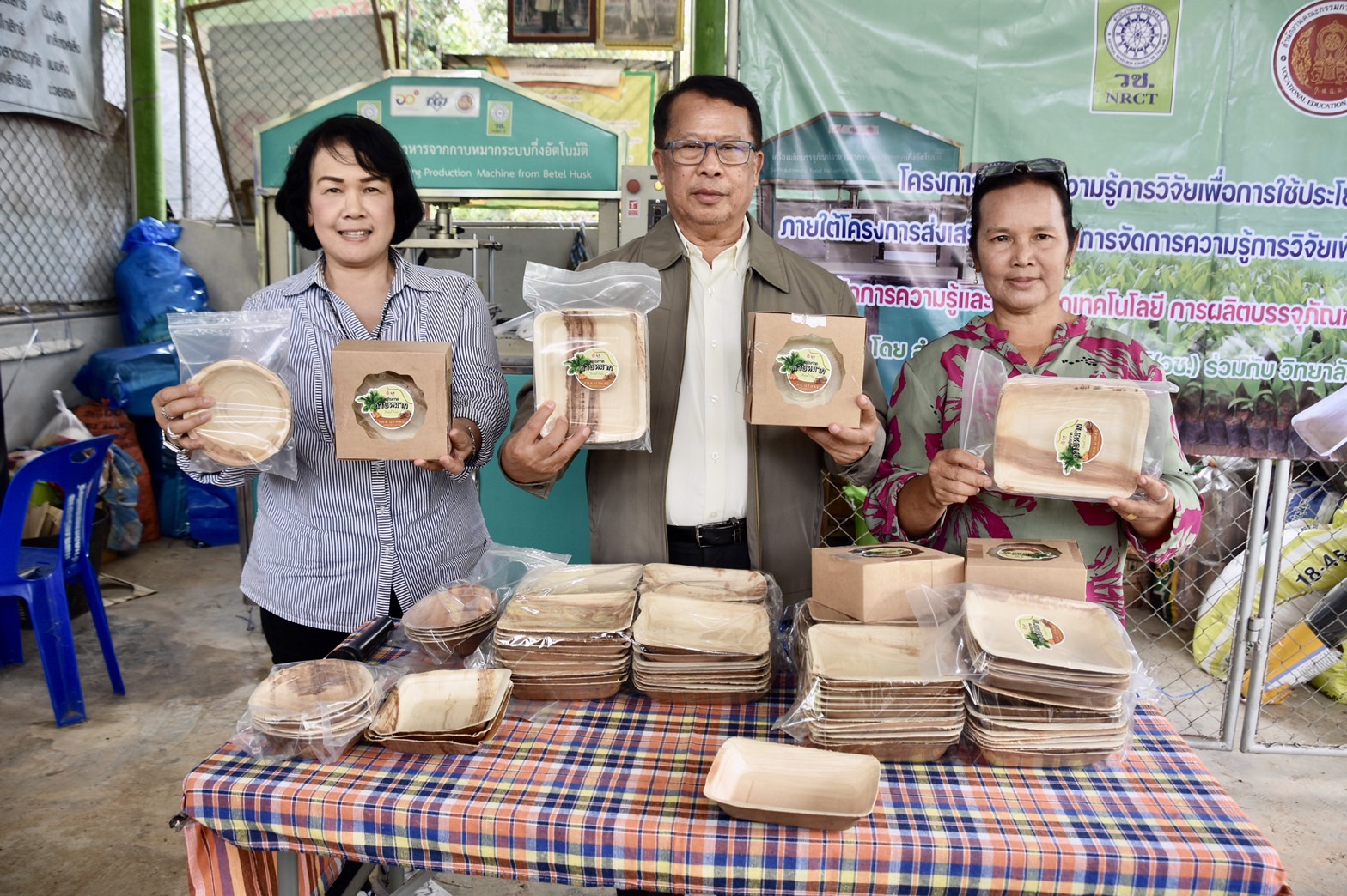 วันที่ 29 พฤษภาคม 2566 สำนักงานการวิจัยแห่งชาติ (วช.) กระทรวงการอุดมศึกษา วิทยาศาสตร์ วิจัยและนวัตกรรม โดย ดร.วิภารัตน์ ดีอ่อง ได้มอบหมายให้กลุ่มสารนิเทศและประชาสัมพันธ์ นำคณะสื่อมวลชน ติดตามผลสำเร็จจากการดำเนินโครงการวิจัย “การจัดการความรู้และถ่ายทอดเทคโนโลยีการผลิตบรรจุภัณฑ์อาหารจากกาบหมากแทนโฟม” ของ ดร.ธวัชไชย ลิ้มสุวรรณ วิทยาลัยเทคนิคสุราษฎร์ธานี ซึ่งได้รับการสนับสนุนทุนอุดหนุนการทำกิจกรรมส่งเสริมและสนับสนุนการทำวิจัยและนวัตกรรม ภายใต้ทุนท้าทายไทยเพื่อการใช้ประโยชน์เชิงชุมชน สังคม จาก วช. ณ กลุ่มวิสาหกิจชุมชนส่งเสริมอาชีพเกษตรกรชาวสวนยาง ตำบลท่าอุแท อำเภอเมืองกาญจนดิษฐ์ จังหวัดสุราษฎร์ธานี