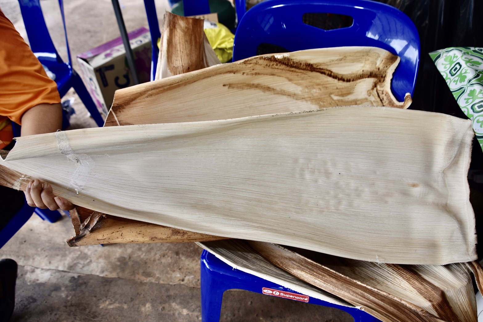 “ทำไมถึงเลือกกากหมาก เนื่องจากจังหวัดสุราษฎร์ธานี มีการปลูกหมากเป็นจำนวนมาก แต่ส่วนใหญ่จะเก็บเกี่ยวเฉพาะผลหมากมาจำหน่าย หรือแปรรูปทำหมากแห้งส่วนกาบหมากก็จะทิ้งไว้ในสวน ทั้งนี้หากนำกาบหมากมาทำผลิตภัณฑ์เพื่อจำหน่ายก็จะเป็นการสร้างรายได้ให้กับชุมชนเพิ่มขึ้น ประจวบกับในสภาวะปัจจุบันราคาพืชผลทางการเกษตรมีราคาต่ำลงมาทำให้เกษตรกรมีรายได้ลดลง”