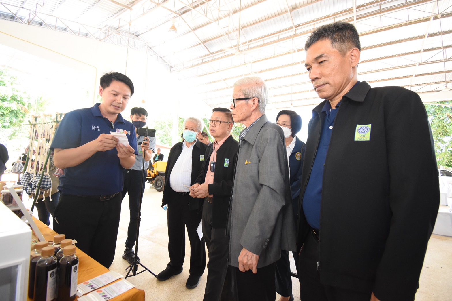 รศ.ศักดิ์ไทย สุรกิจบวร รองประธานคณะอนุกรรมาธิการบูรณาการบริการวิชาการอุดมศึกษาฯ กล่าวว่า โครงการนี้ได้รับทุนอุดหนุนการทำกิจกรรมส่งเสริมและสนับสนุนการวิจัยและนวัตกรรมเพื่อความสามารถในการแข่งขันของประเทศ เครือข่ายยกระดับศักยภาพผลิตภัณฑ์ชุมชน ประจำปี 2565 จาก วช. โดยเน้นโครงการที่ตอบโจทย์ความต้องการของพื้นที่ โดยมี ผศ.ชาคริต ชาญชิตปรีชา รักษาราชการแทนอธิการบดีมหาวิทยาลัยราชภัฏสกลนคร เป็นหัวหน้าโครงการฯ ในการดำเนินงานที่ผ่านมา คณะกรรมาธิการการอุดมศึกษา วิทยาศาสตร์ วิจัยและนวัตกรรม วุฒิสภา ได้มีการติดตามผลการดำเนินงานของโครงการเห็นความตั้งใจของหัวหน้าโครงการฯ การสนับสนุนของส่วนราชการต่าง ๆ ในจังหวัดสกลนคร ที่สำคัญยิ่งคือ ความร่วมมือร่วมใจของพี่น้องชาวตำบลอุ่มจาน ตำบลเต่างอย และตำบลบึงทวาย ที่ช่วยกันดำเนินกิจกรรมโครงการนี้สำเร็จลุล่วงไปได้ด้วยดี ในการขยายผลองค์ความรู้จากผลงานวิจัยและนวัตกรรมไปถ่ายทอดขยายผลเพื่อการเพิ่มประสิทธิภาพในกระบวนการผลิต การยกระดับคุณภาพชีวิตของประชาชน ซึ่งนวัตกรรมที่จะทำการส่งมอบนี้ล้วนเป็นฝีมือของนักวิจัยไทย ที่พัฒนาโดยทีมคณะนักวิจัยจากมหาวิทยาลัยราชภัฎสกลนคร
