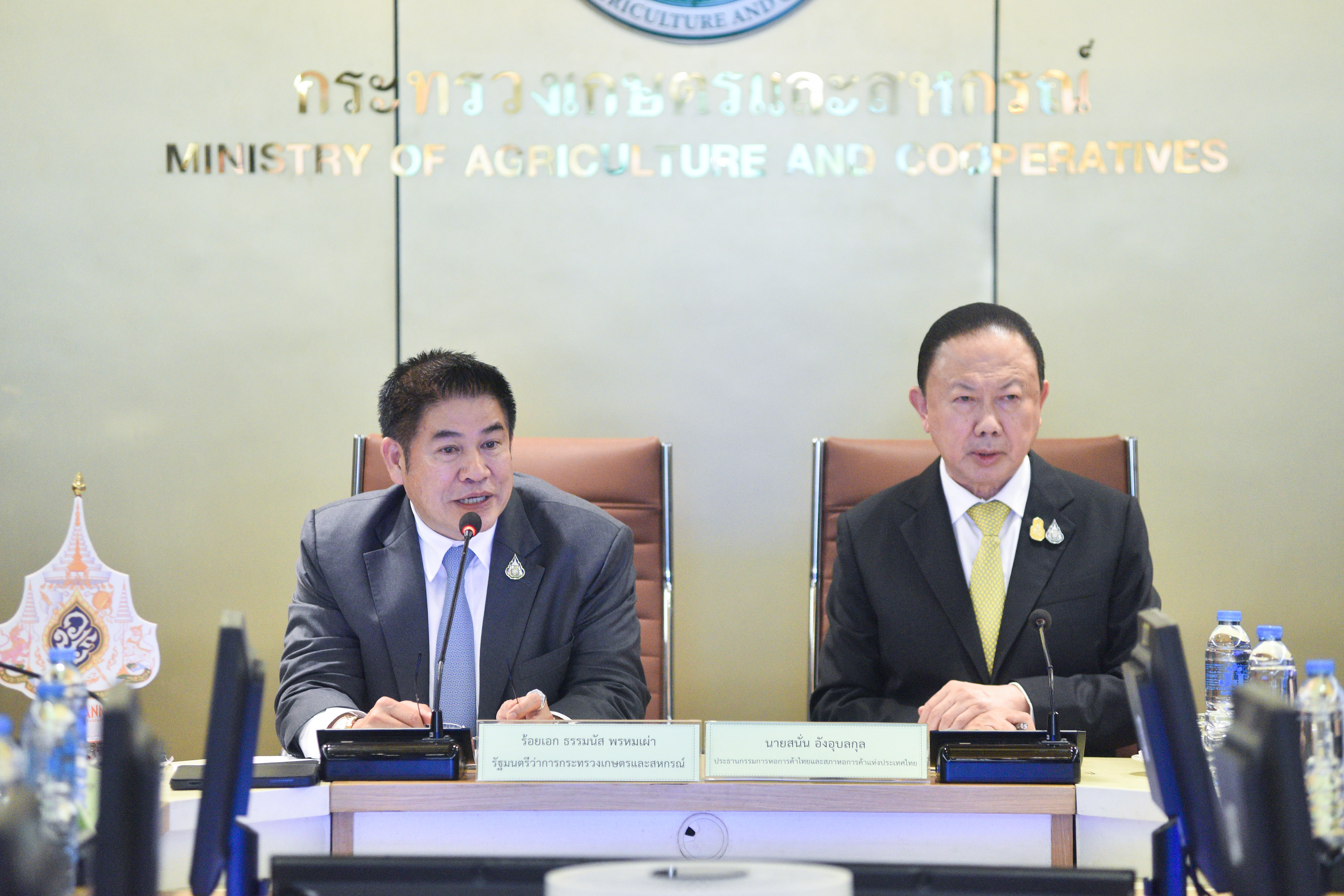 (วันที่ 5 ตุลาคม 2566 ) นายสนั่น อังอุบลกุล ประธานกรรมการหอการค้าไทยและสภาหอการค้า แห่งประเทศไทย เข้าพบและหารือกับ ร้อยเอกธรรมนัส พรหมเผ่า รัฐมนตรีว่าการกระทรวงเกษตรและสหกรณ์ และคณะผู้บริหารกระทรวงเกษตรและสหกรณ์ เพื่อแสดงความยินดีในโอกาสเข้ารับตำแหน่ง และยื่นข้อเสนอภาคเอกชนในการยกระดับภาคเกษตรและอาหารของประเทศ ณ ห้องประชุมกระทรวงเกษตรและสหกรณ์