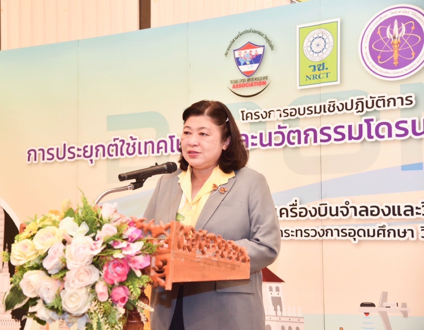 นางสาวสุชารัตน์ แสงอรุณ ผู้อำนวยการสำนักงานการท่องเที่ยวแห่งประเทศไทย สำนักงาน นครสวรรค์–พิจิตร กล่าวว่า วช. และ สมาคมกีฬาเครื่องบินจำลองและวิทยุบังคับ ได้นำโครงการการอบรมเชิงปฏิบัติการ "การประยุกต์ใช้เทคโนโลยีและนวัตกรรมโดรนเพื่อส่งเสริมการท่องเที่ยว" มาสนับสนุนท่องเที่ยวในจังหวัดพิจิตร สร้างความตื่นตาตื่นใจให้กับจังหวัดพิจิตรเป็นอย่างยิ่ง ซึ่ง ททท. เล็งเห็นการนำนวัตกรรมมาใช้กับการท่องเที่ยว และหวังเป็นอย่างยิ่งว่าการอบรมโดรนในครั้งนี้ จะนำไปสู่การสร้างทักษะความรู้ที่ได้รับจากการอบรมมาพัฒนาต่อยอดและสร้างแรงบันดาลใจให้กับบุคลากรจากหลากหลายหน่วยงานและเยาวชนในพื้นที่
